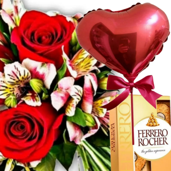 🌹 1 Ramalhete Trio de Rosas com Astromélias frescas e delicadas